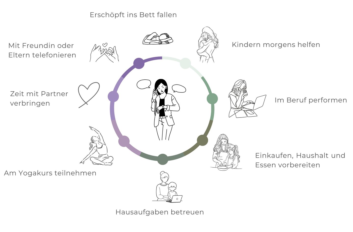 …deinem Alltag, der sich anfühlt wie ein endloser Überlebensmodus. Du rennst von Termin zu Termin, schaffst alles für alle, aber am Ende des Tages bleibst du selbst auf der Strecke.