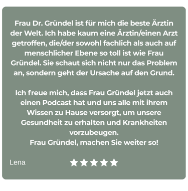 Seit über 15 Jahren leitet Frau Dr. Gründel ihre eigene erfolgreiche Praxis mit tausenden geholfenen Menschen. Die Möglichkeit mit ihrem Wissen und ihren Fähigkeiten einen noch viel größeren positiven Impact als ausschließlich auf den lokalen Praxisumkreis haben zu können, ist die Motivation zusätzlich zu der Praxis vor Ort auch auf digitale Weise Menschen im Thema Gesundheit positiv zu unterstützen.